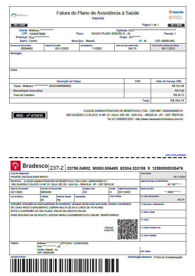 1 Confira se o nome do titular e o endereço estão corretos no boleto e se o beneficiário do pagamento é Mount Hermon Administradora de Benefícios Ltda ou Allcare Administradora de Benefícios SA.